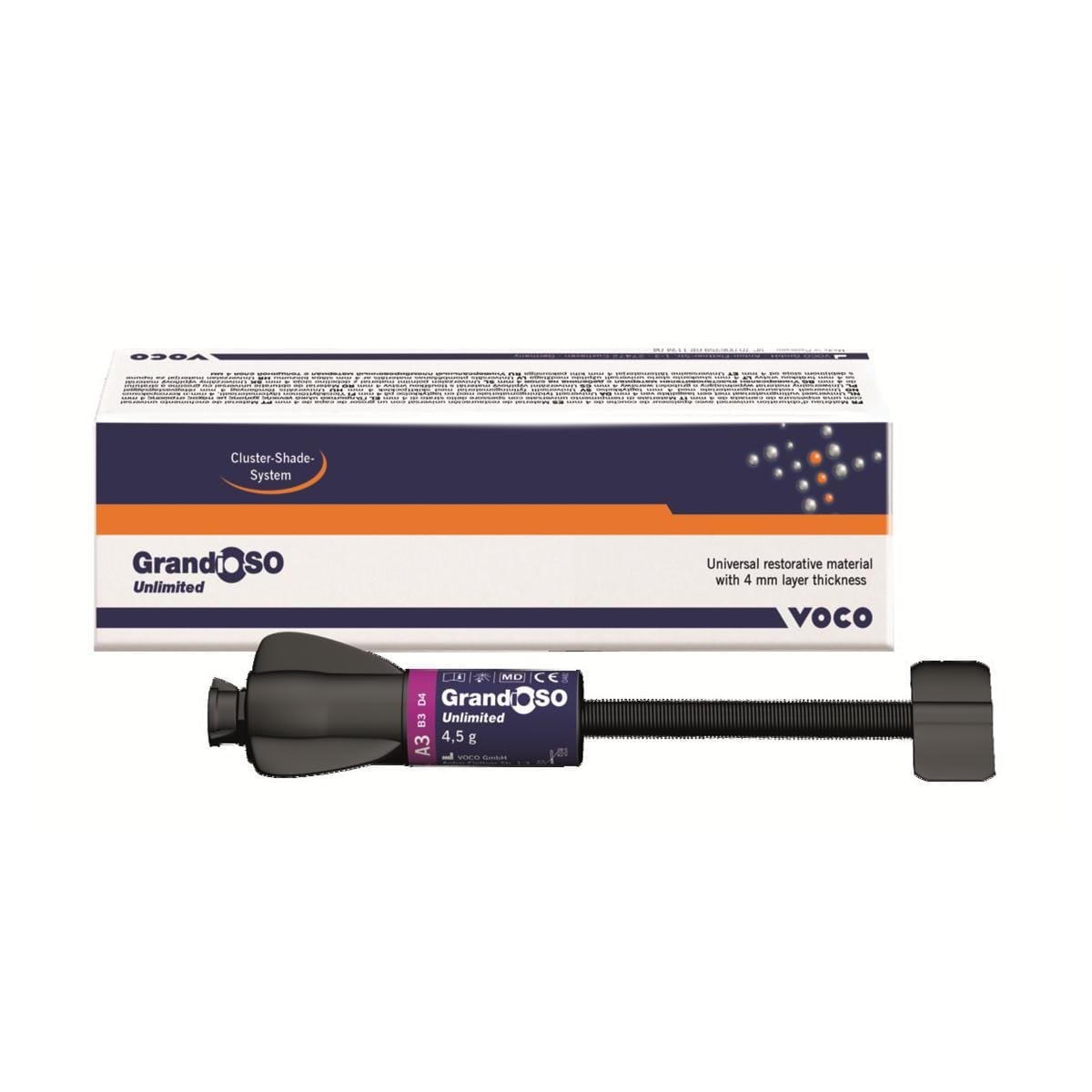 GrandioSO Unlimited se distingue aussi par sa grande capacité de polissage et son éclat durable, ce qui garantit des restaurations esthétiques fiables au fil du temps. Chaque seringue de 4,5 g offre une quantité suffisante pour de nombreuses restaurations, et existe dans toutes les teintes essentielles afin de s’adapter parfaitement aux besoins cliniques quotidiens.
