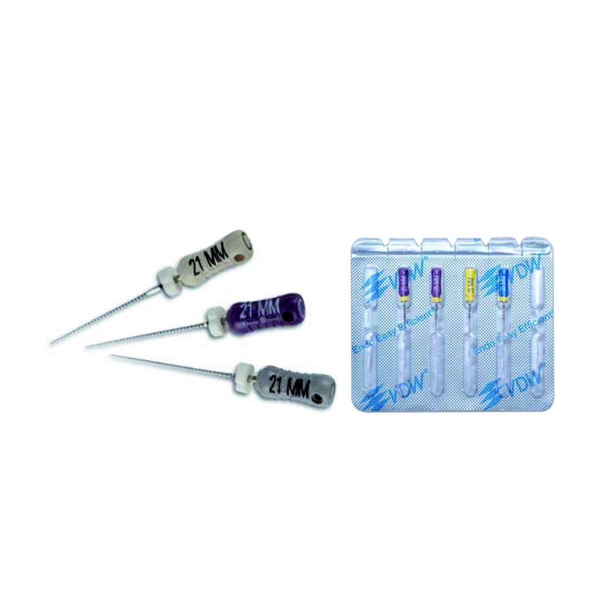 Les limes sont conditionnées stériles, en boîte de 6 unités, prêtes à l’emploi et codées couleur selon la norme ISO pour faciliter l’identification des tailles.