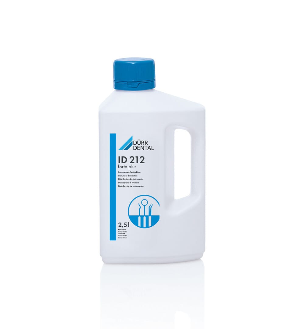 Le ID 212 Forte – Dürr Dental est un concentré de nettoyage et de désinfection destiné aux instruments dentaires, chirurgicaux et rotatifs. Formulé sans aldéhyde, il assure une désinfection efficace tout en respectant les matériaux sensibles, notamment les instruments en nickel-titane ou certains composites.