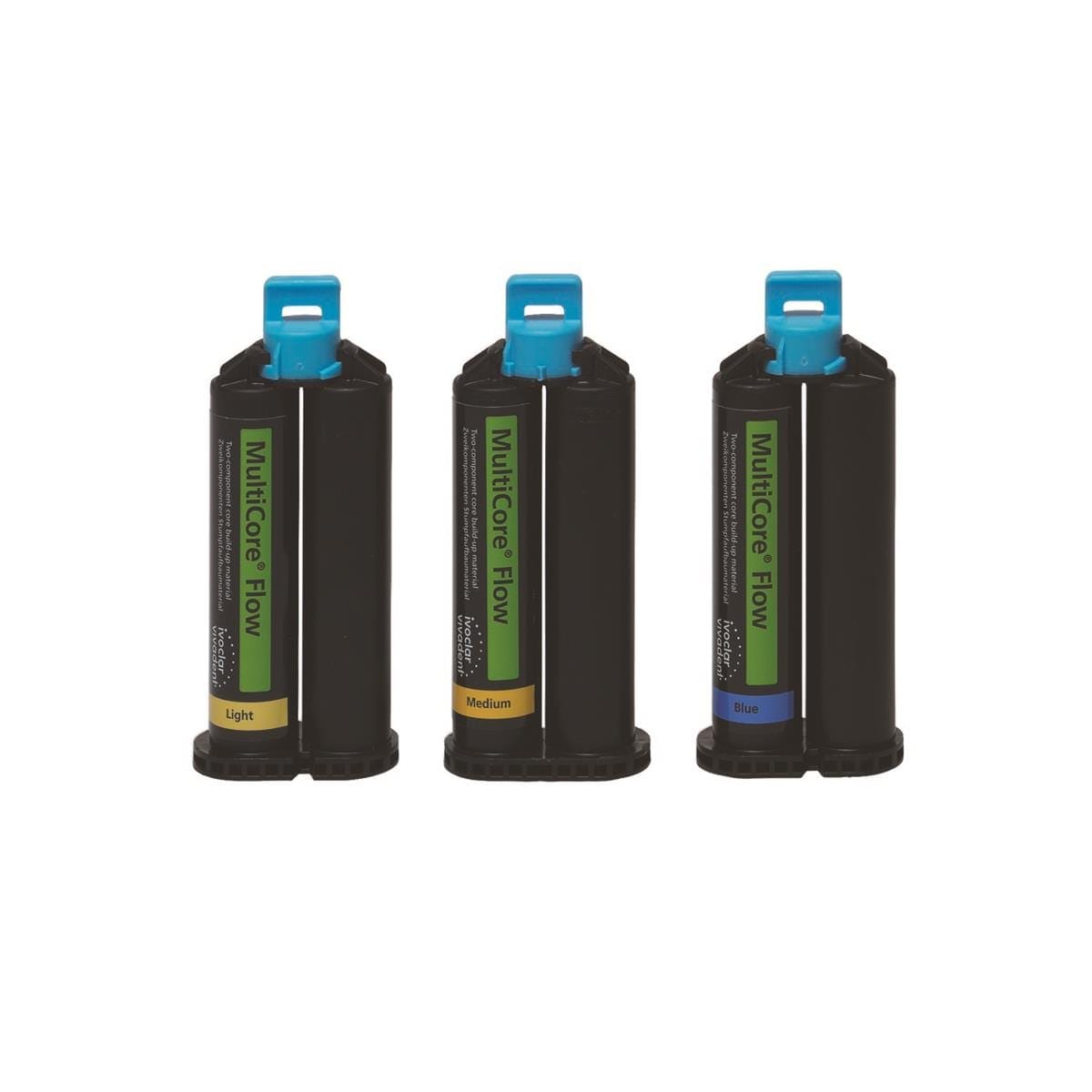 Multicore Flow est un composite fluide photopolymérisable universel utilisé en dentisterie pour une grande variété d’applications cliniques, notamment les restaurations minimally invasive, les réparations, les scellements marginaux et l’obturation de petites cavités. Sa consistance fluide et homogène permet une application précise dans les zones difficiles d’accès, tout en assurant une excellente adaptation aux parois dentaires.